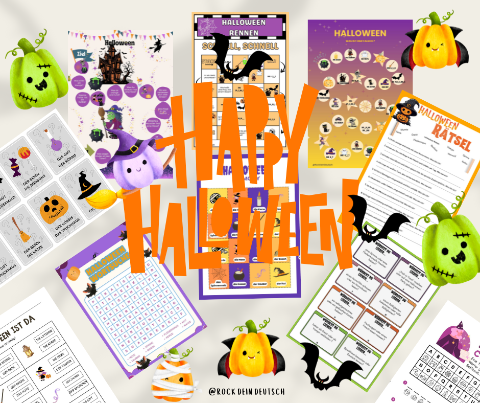 Halloween auf Deutsch - Wortschatz 24 plansze na lekcjeHalloweenowy Zestaw Edukacyjny – idealny dla młodszych i starszych uczniów! Zawiera fiszki, quizy, k15,00 zł -