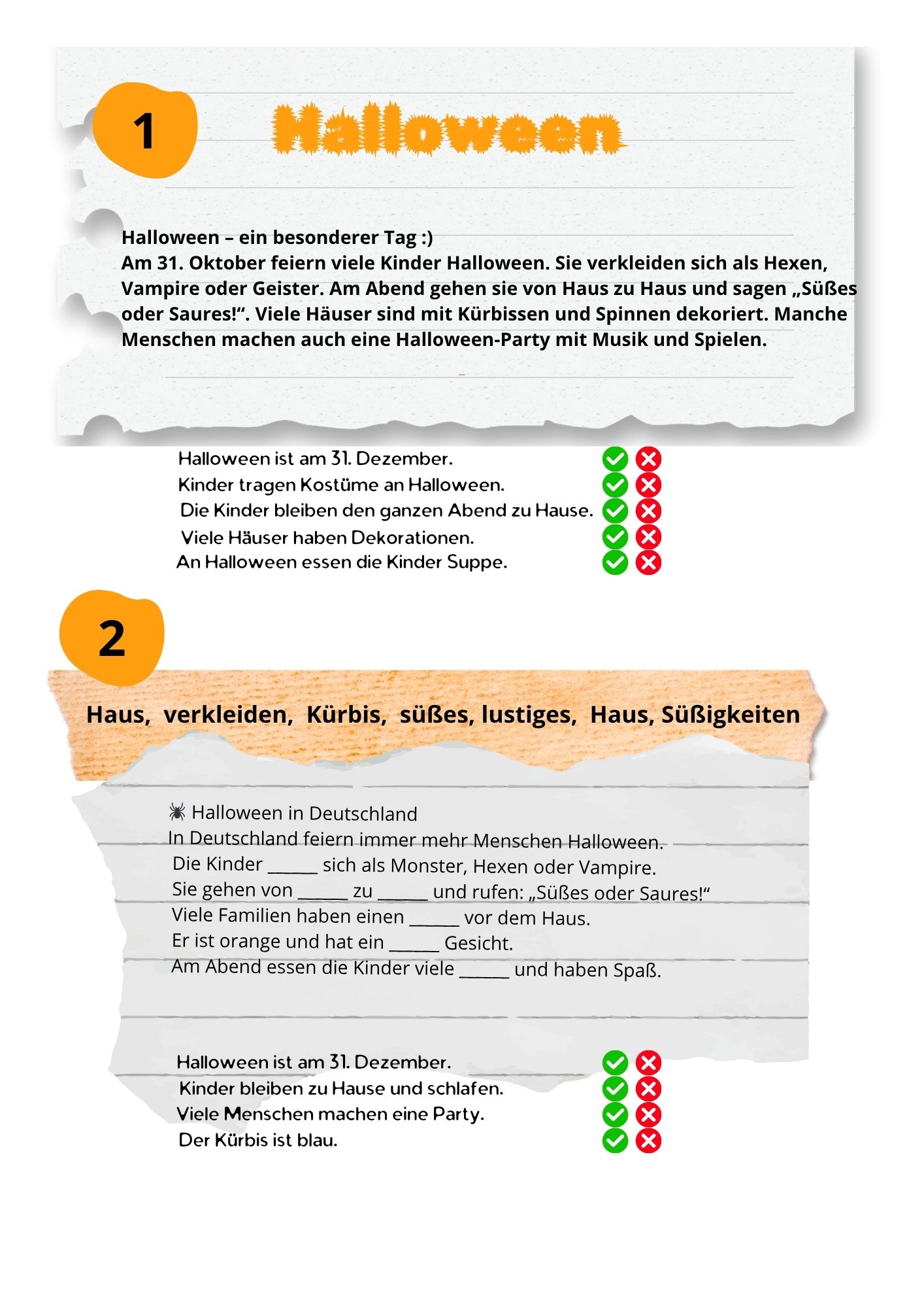Halloween Arbeitsblaetterproste krótkie teksty nt hallowenn z zadaniami9,00 zł -