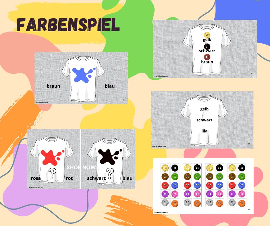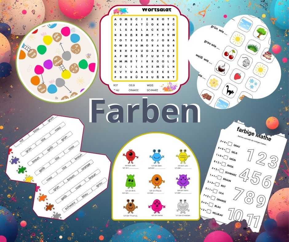 Farben auf Deutsch - 23 Arbeitsblaettermemory quizy, gry planszowe, wykreślanki 23 karty pracy15,00 zł -