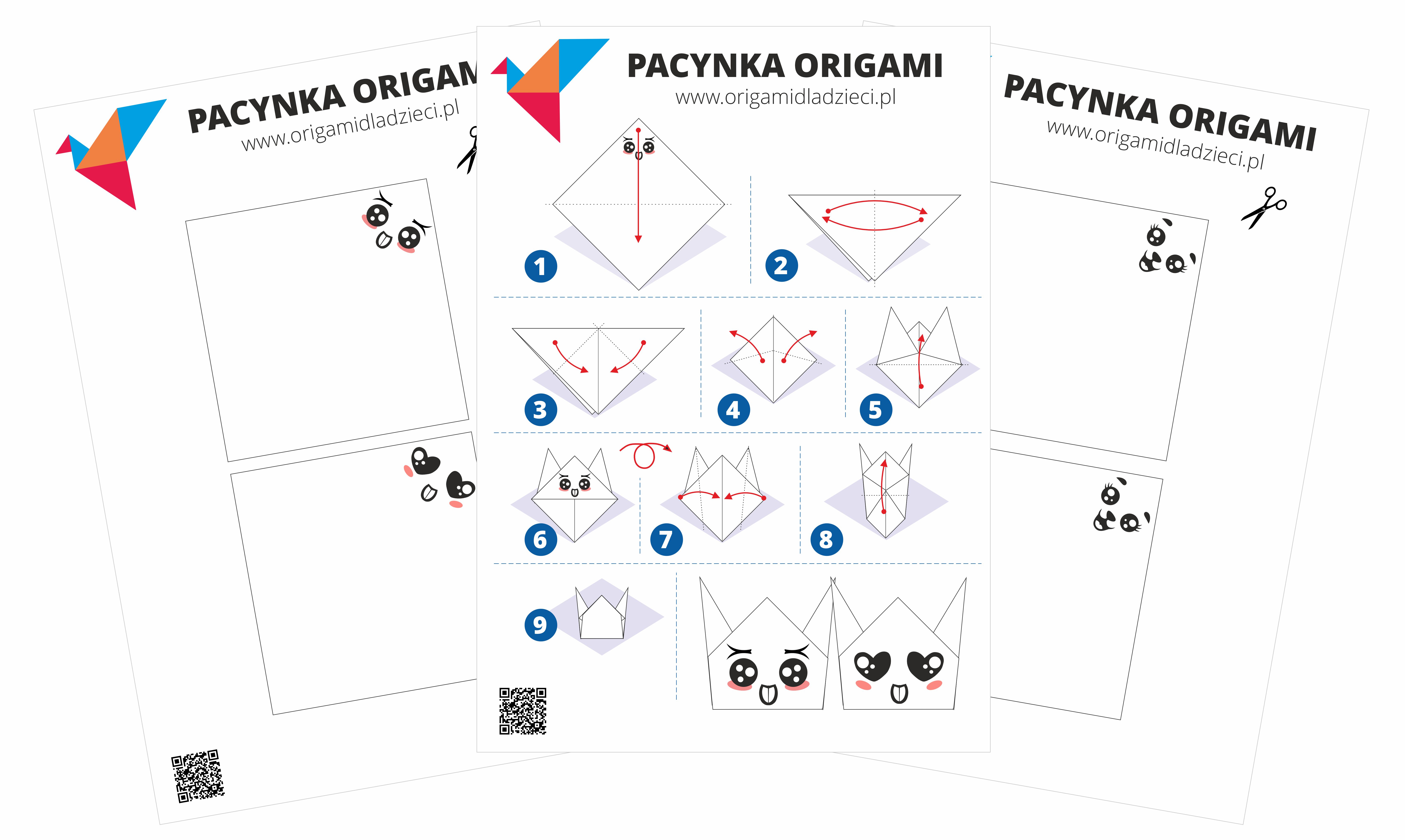 Szablon zawiera jasną, obrazkową instrukcję krok po kroku. To proste zagięcia, z którymi poradzą sobie już przedszkolaki z niewielką pomocą rodzica. Starsze dzieci wykonają je samodzielnie!