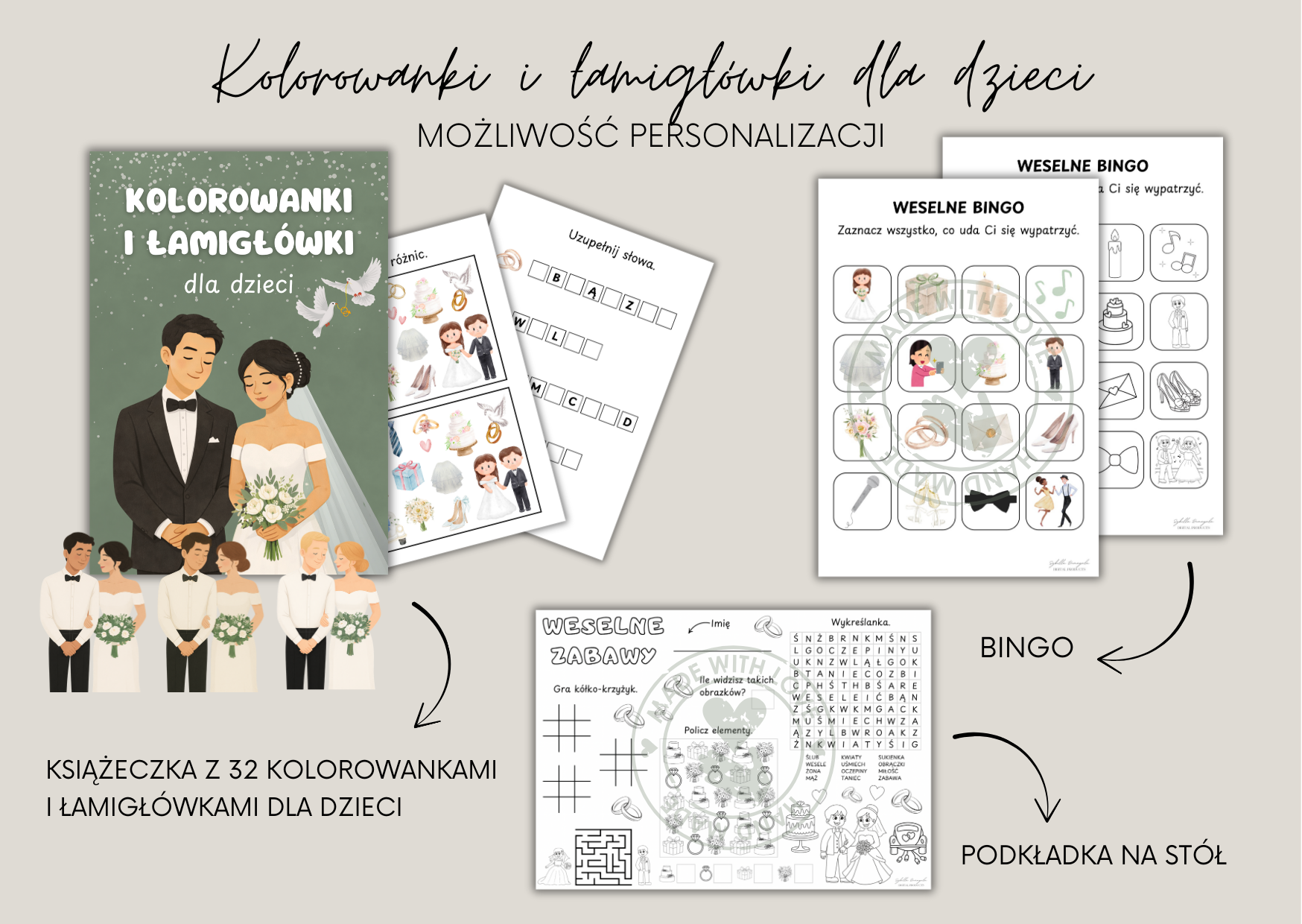Zestaw WESELNY - książeczka, podkładka oraz bingo