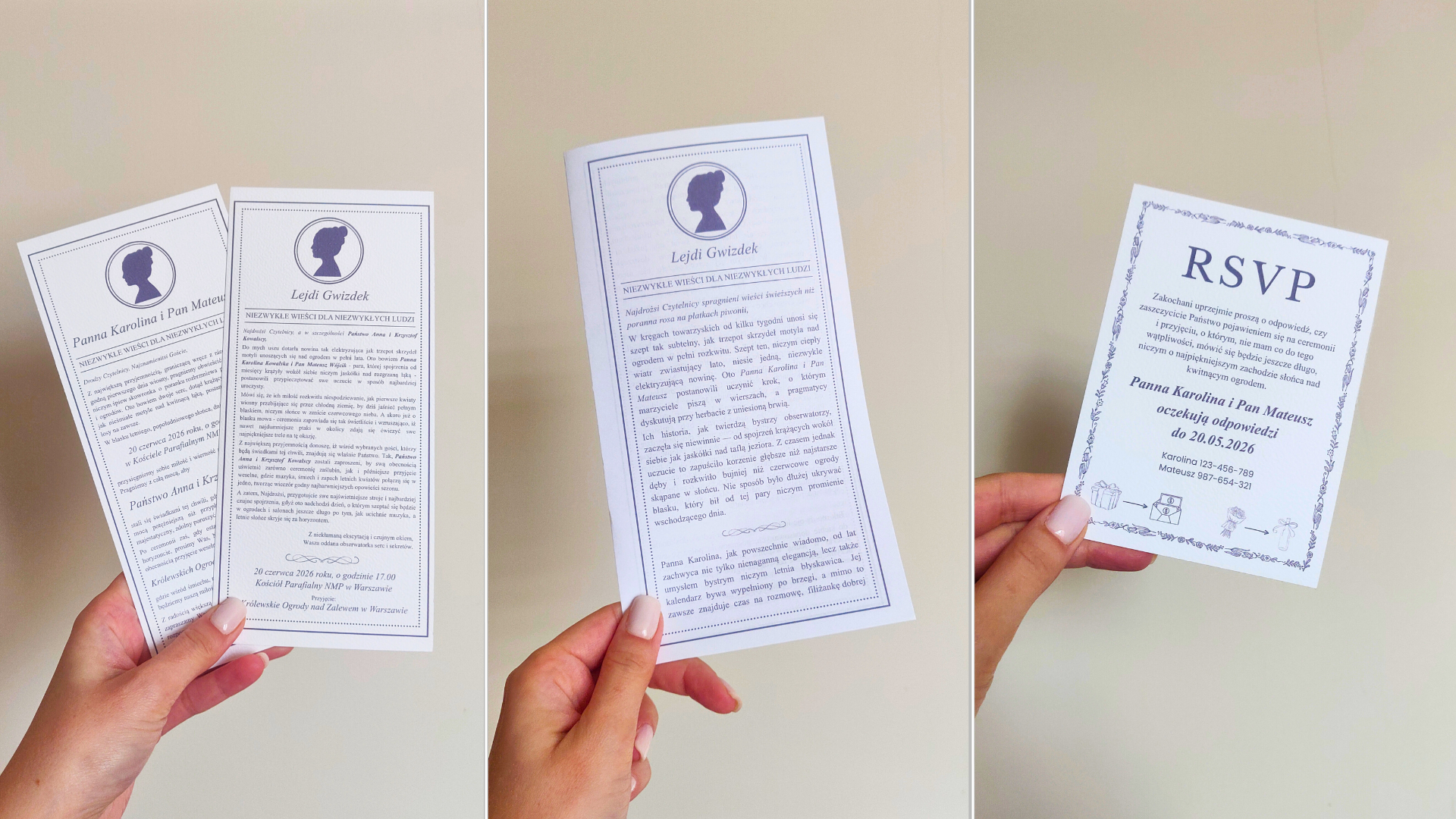 zaproszenie ślubne 100x210mm - podłużne zaproszenie w stylu wieści od Lady Whistledown - 2 projekty do wyboru: pierwszy pisany z perspektywy Pary Młodej, drugi - oczami Lejdi Gwizdek. Poetyckie, obrazowe teksty, które możesz wykorzystać do własnego użytku.