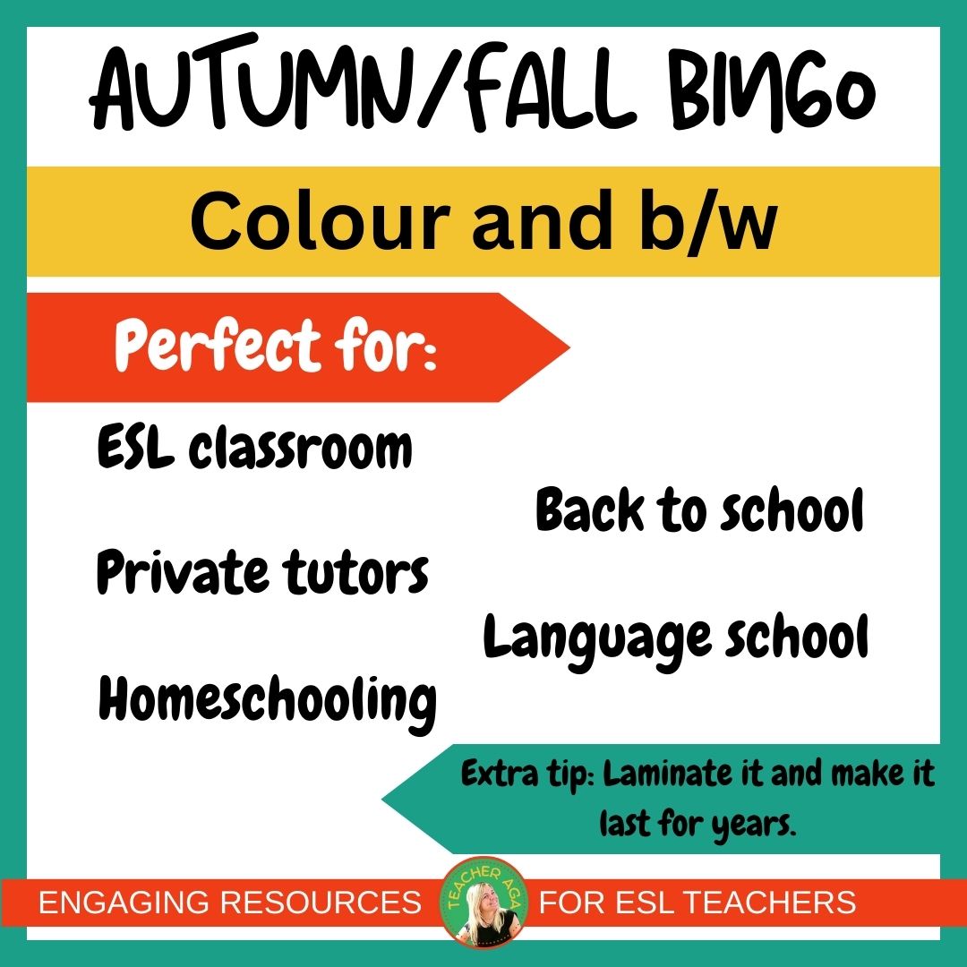 Suitable for ESL classrooms, back to school parties, private tutoring, language schools, and homeschooling