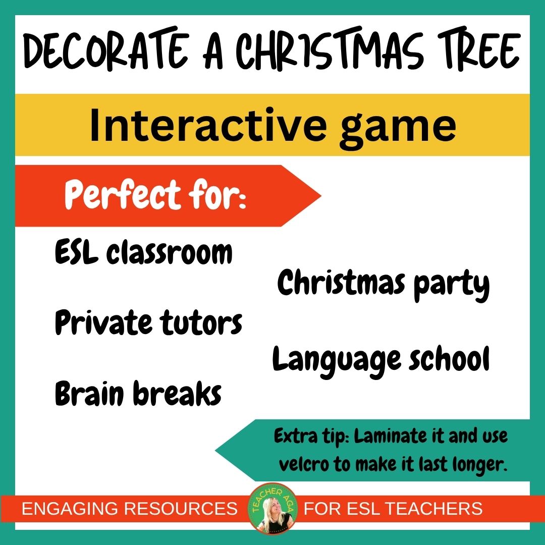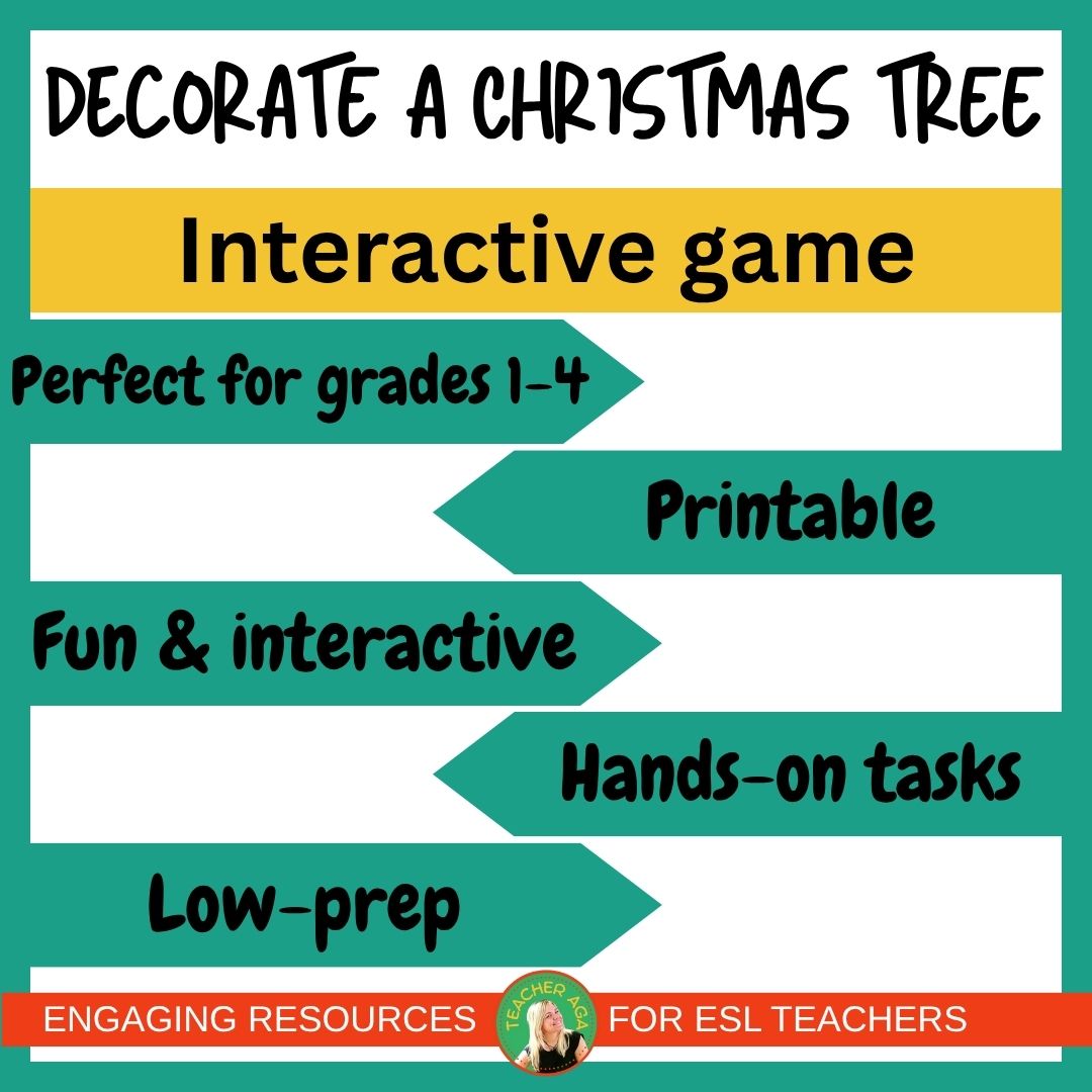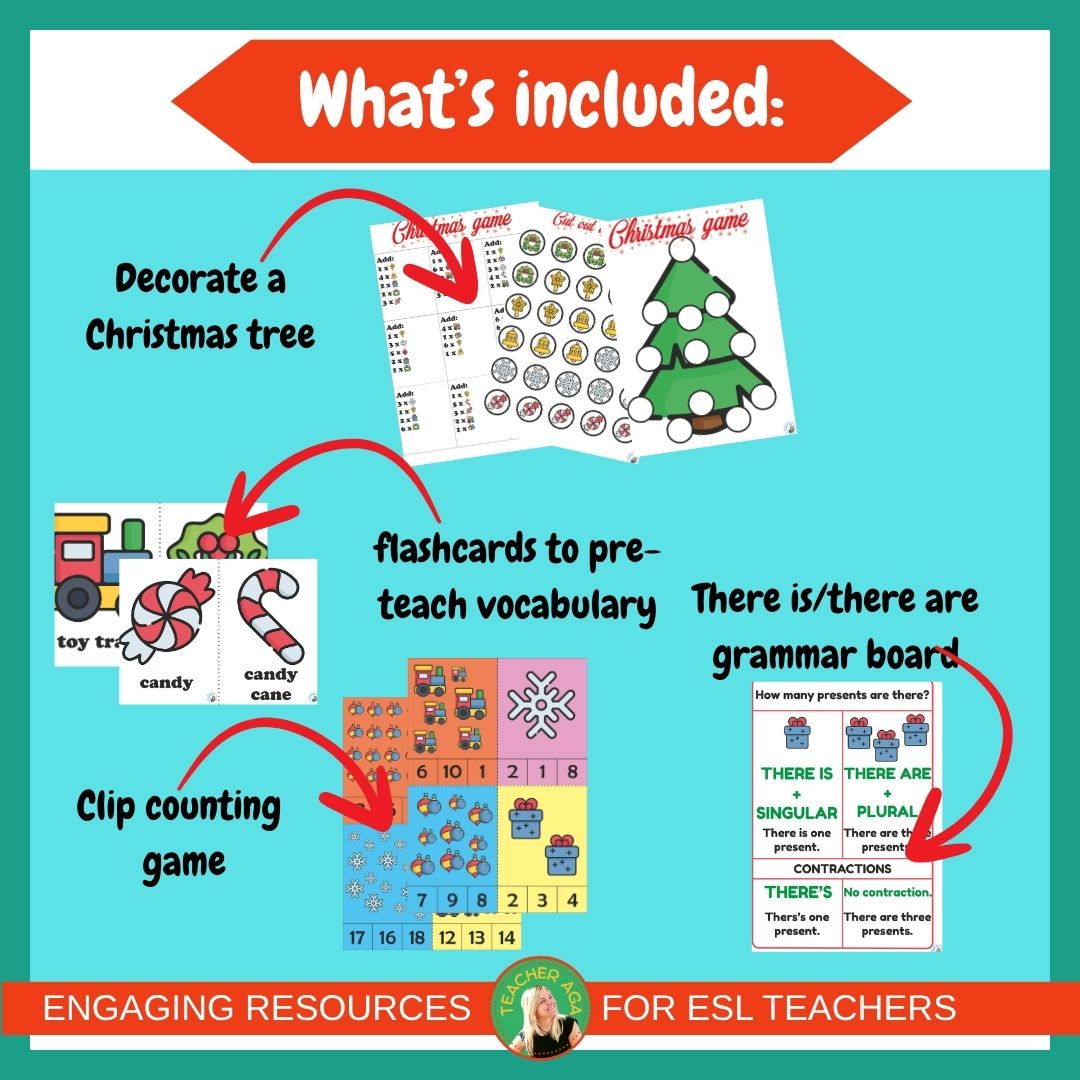 Wprowadźcie świąteczną magię do swoich zajęć dzięki zestawowi świątecznemu: słownictwo, gramatyka (there is / there are) oraz dwie gry: „Decorate your Christmas Tree” i clip counting
