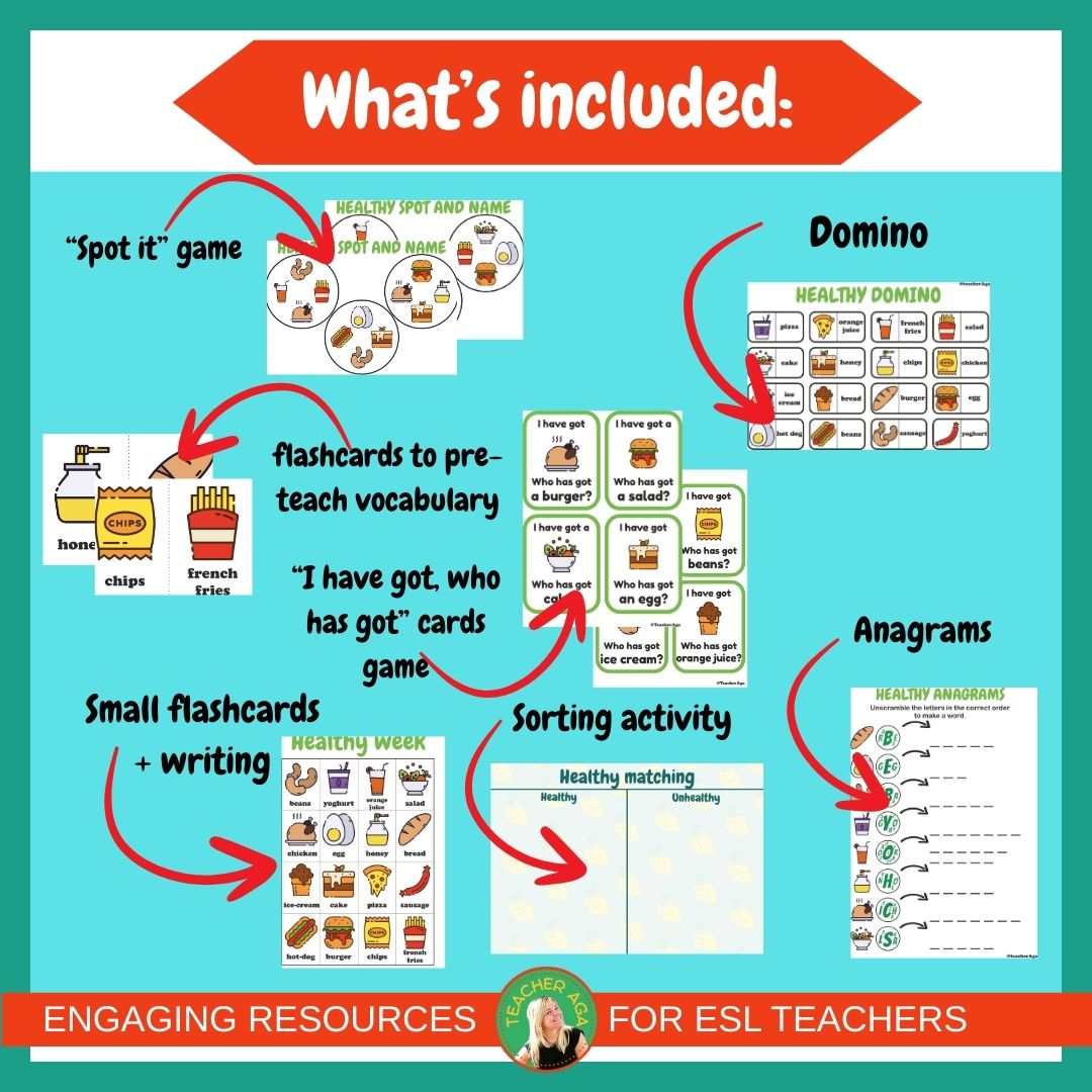 Healthy and unhealthy food | Games and vocabulary | ESL activities
