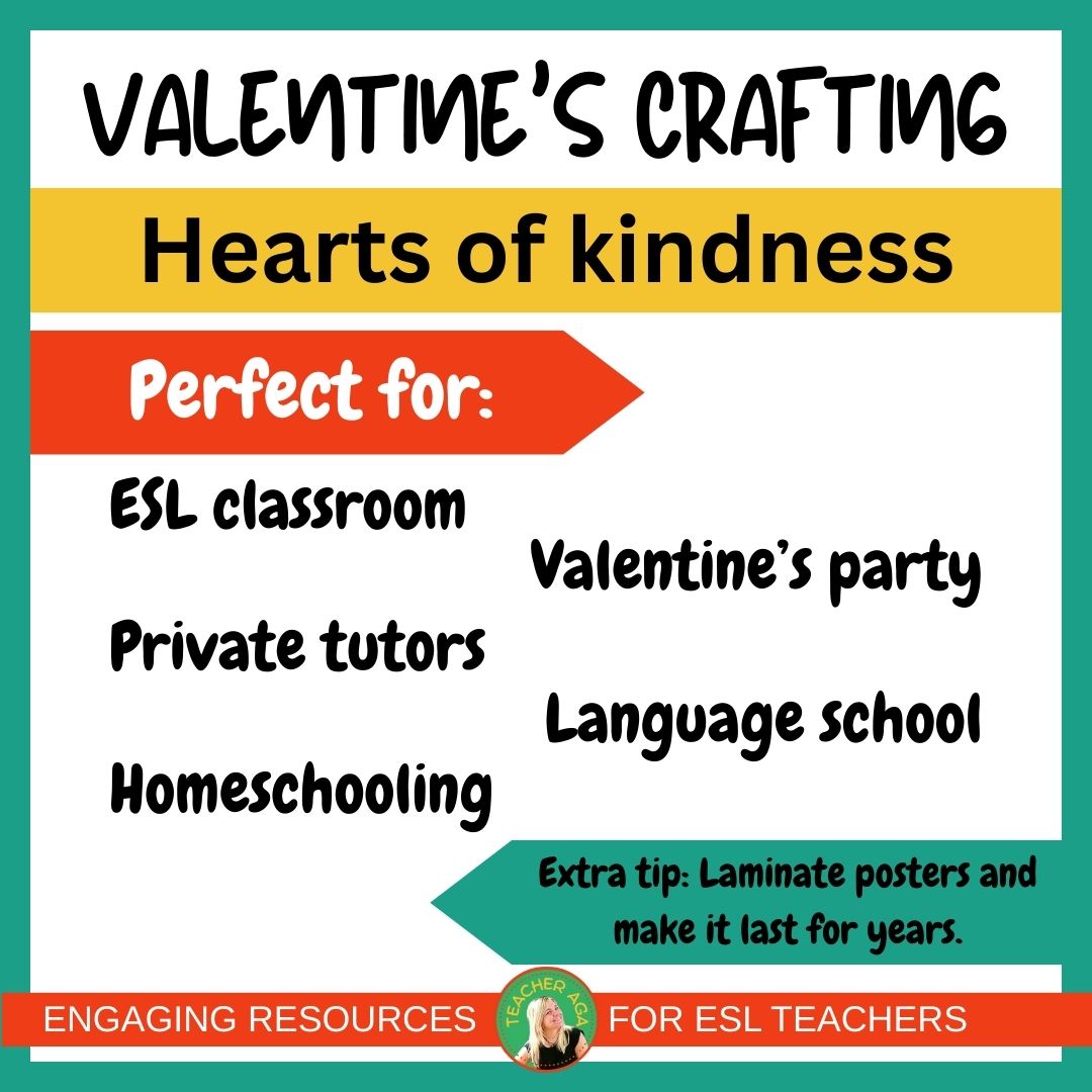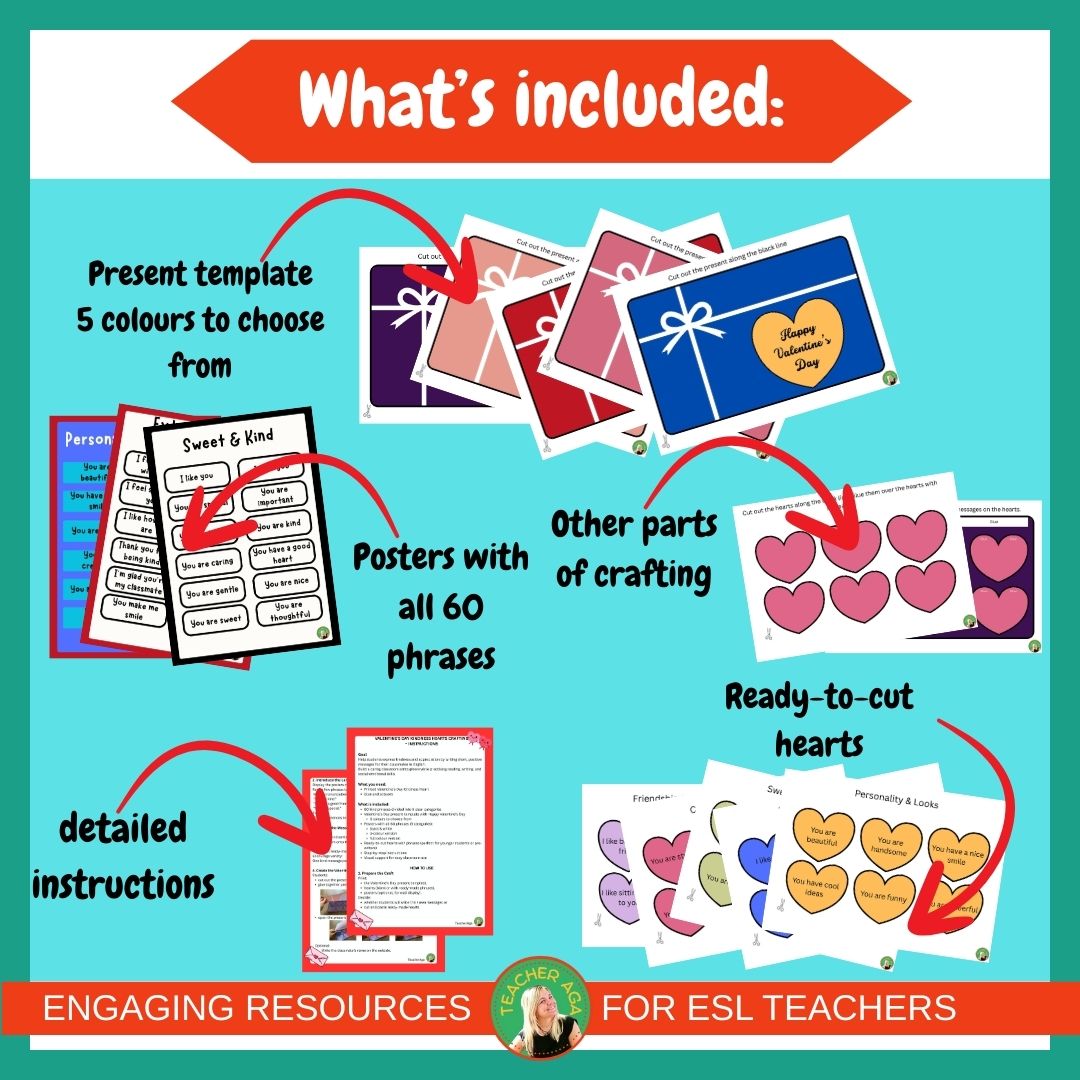 Uczniowie tworzą walentynkowy prezent wypełniony pozytywnymi wiadomościami dla swoich kolegów i koleżanek z klasy, jednocześnie ćwicząc czytanie, pisanie oraz umiejętności społeczno-emocjonalne w języku angielskim.