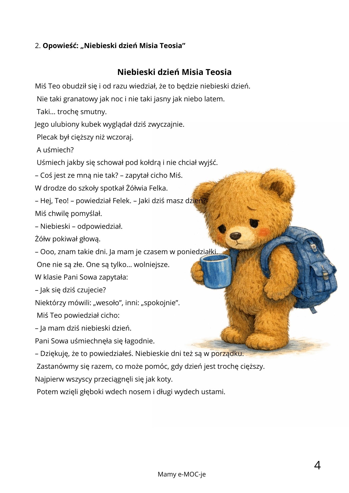 bajkę terapeutyczną „Niebieski dzień Misia Teosia”,