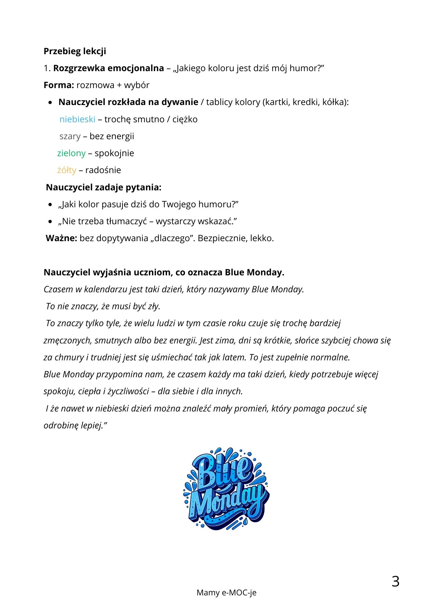 Ten scenariusz pomaga nazwać emocje, oswoić je i pokazać proste sposoby radzenia sobie – bez moralizowania i bez „poprawiania humoru na siłę”.