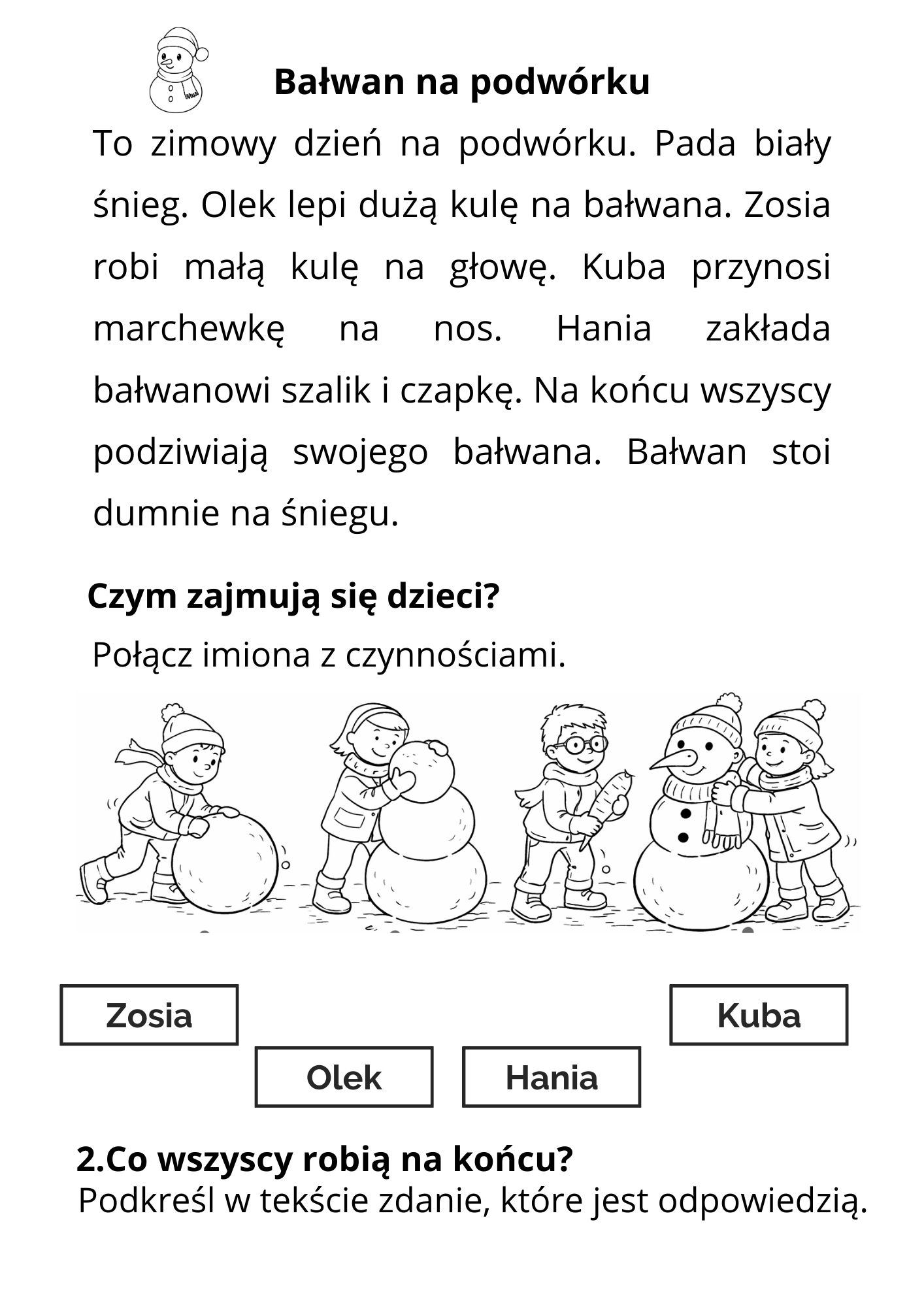 ZIMA – CZYTANIE ZE ZROZUMIENIEM (KLASA 1)