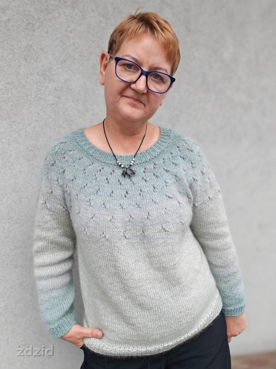 Sweter Blue Lagoon - wzór dziewiarskiopis wykonania swetra reglanowego, przerabianego od góry,23,00 zł -