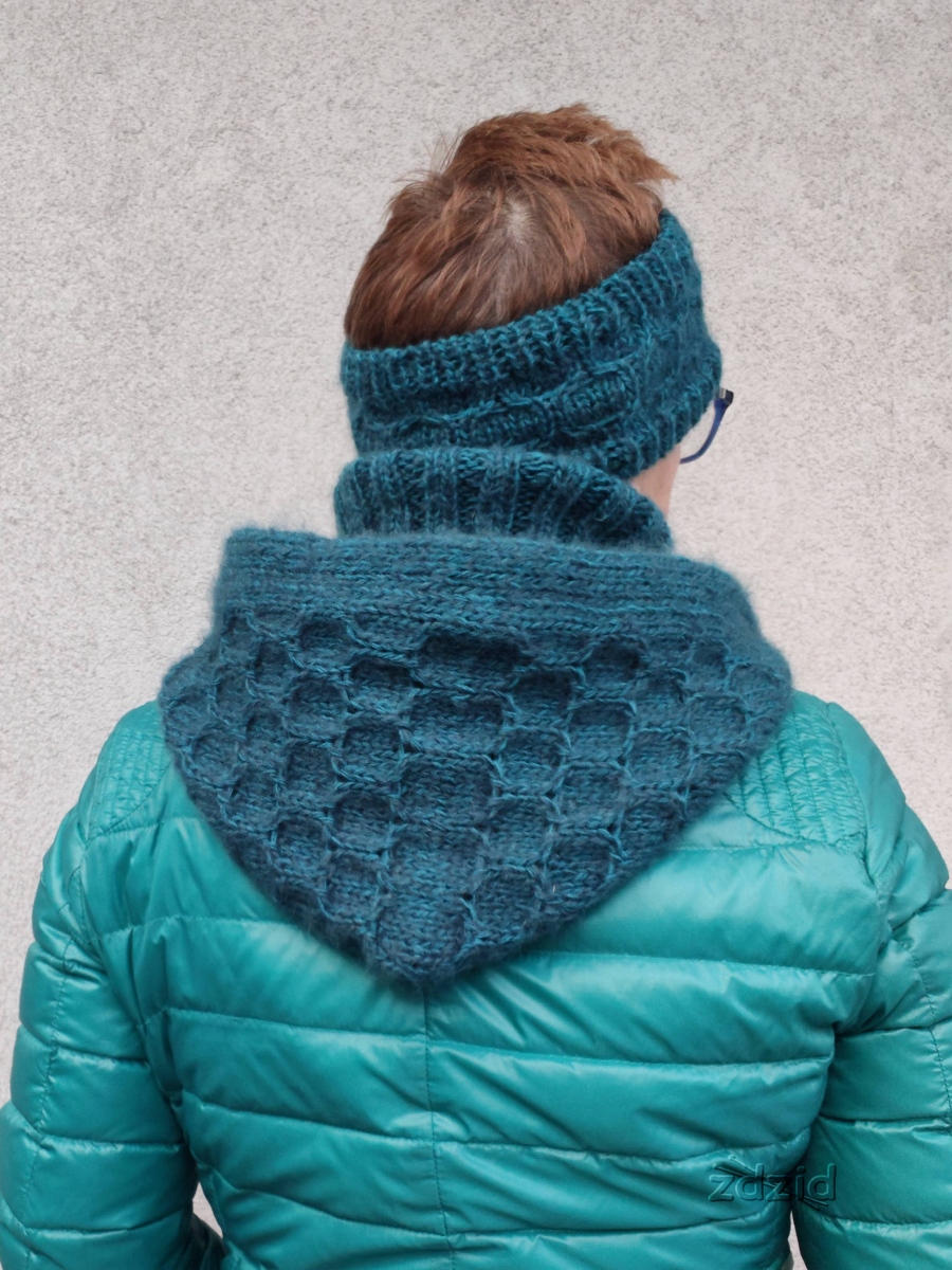 Więcej zdjęć i opis wykonania opaski do kompletu na blogu: https://tojazdzid.blogspot.com/2026/01/szmaragdowy-kaptur-wzor.html