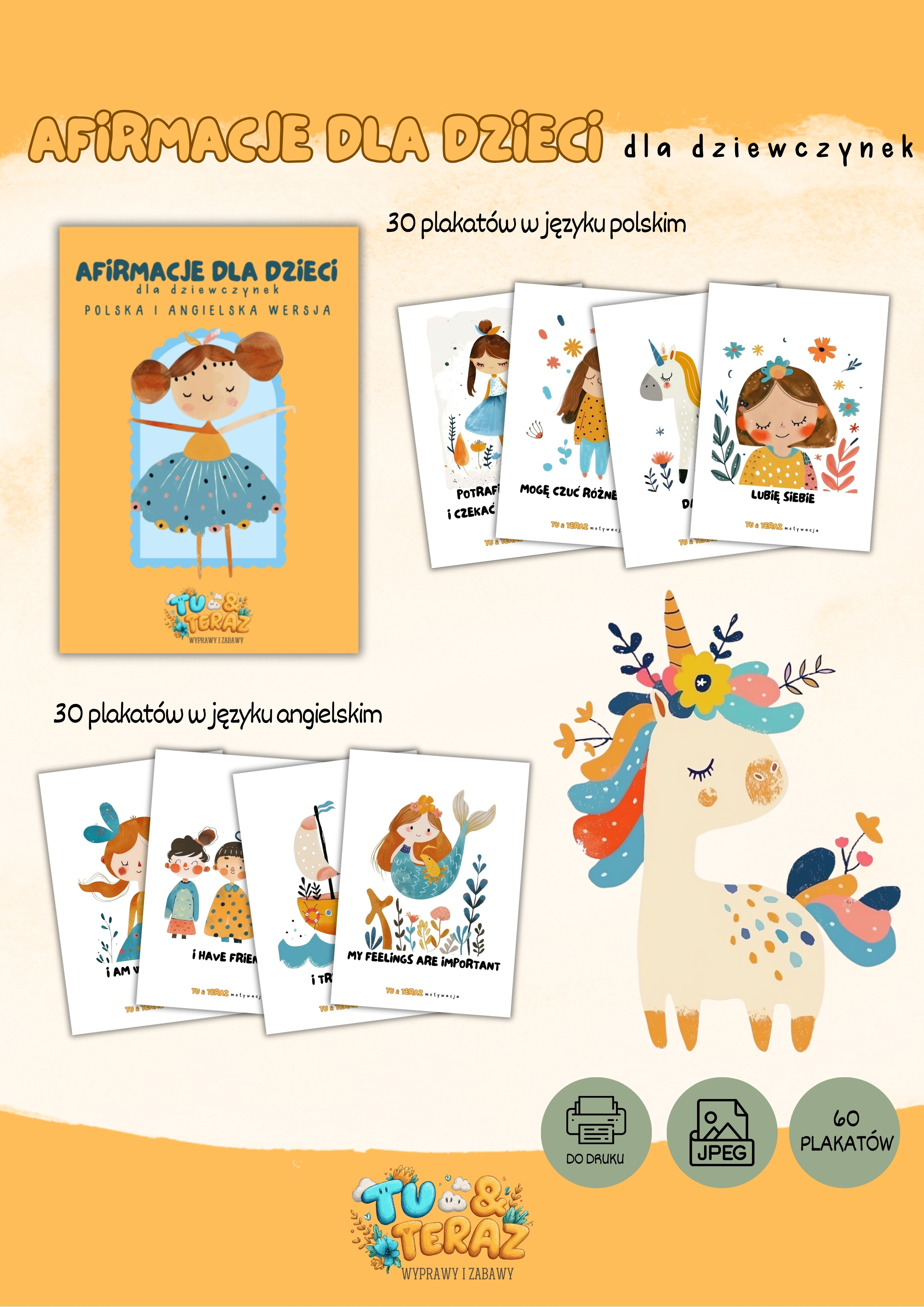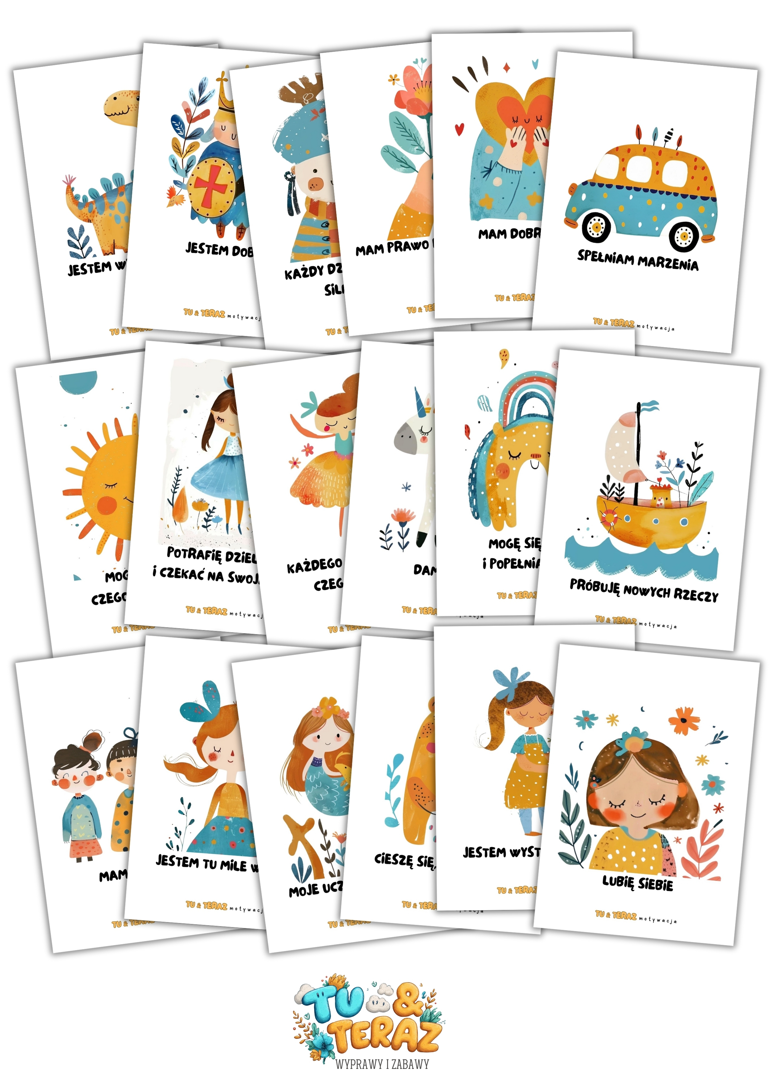 Ten zestaw afirmacji został stworzony z myślą o dziewczynkach – ich emocjach, wrażliwości i potrzebie poczucia bezpieczeństwa. Krótkie, pozytywne zdania pomagają dziecku wzmacniać poczucie własnej wartości, uczyć się wiary w siebie i radzenia sobie z emocjami.