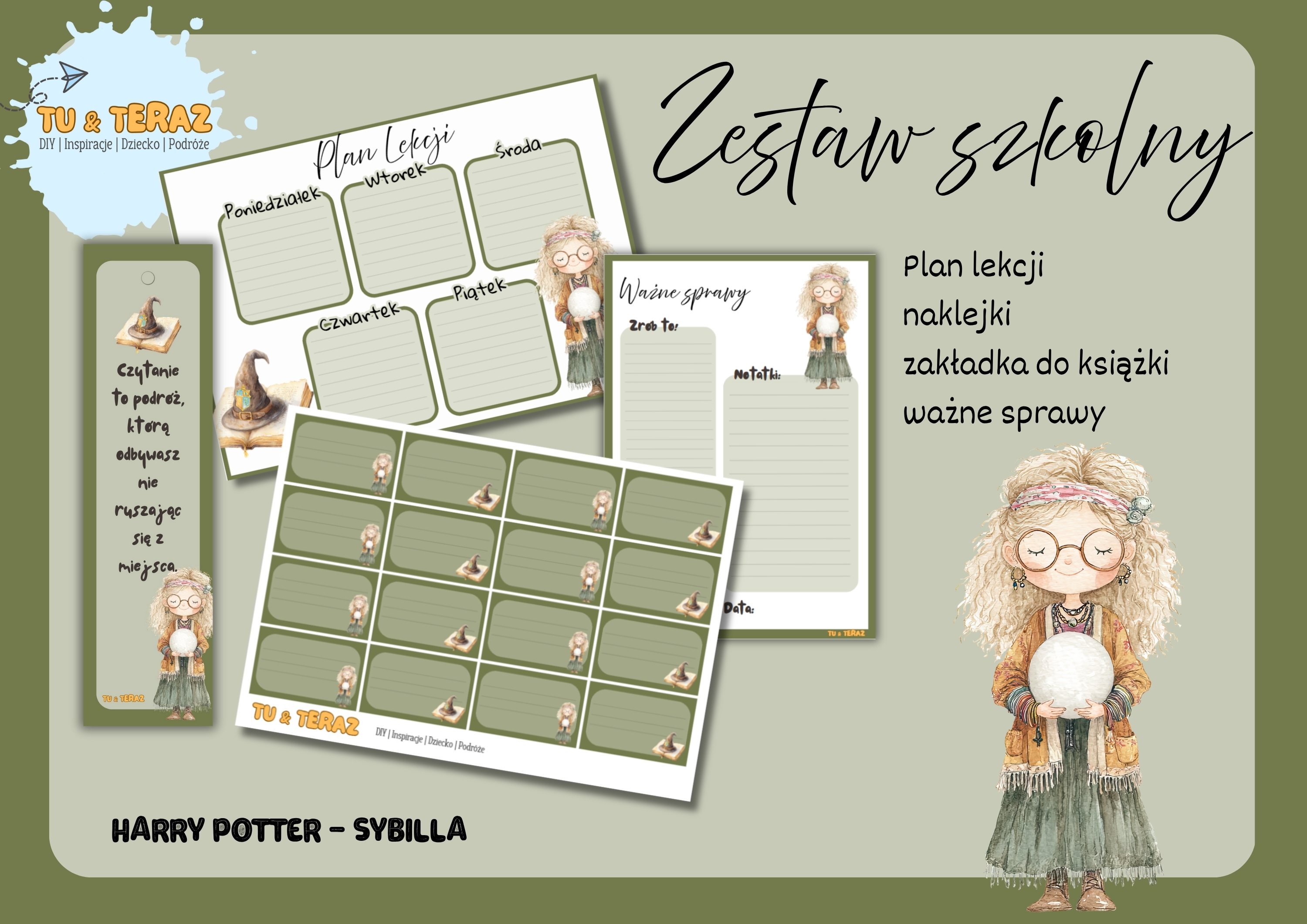 Zestaw szkolny – plan lekcji, naklejki, zakładka i ważne rzeczy do druku