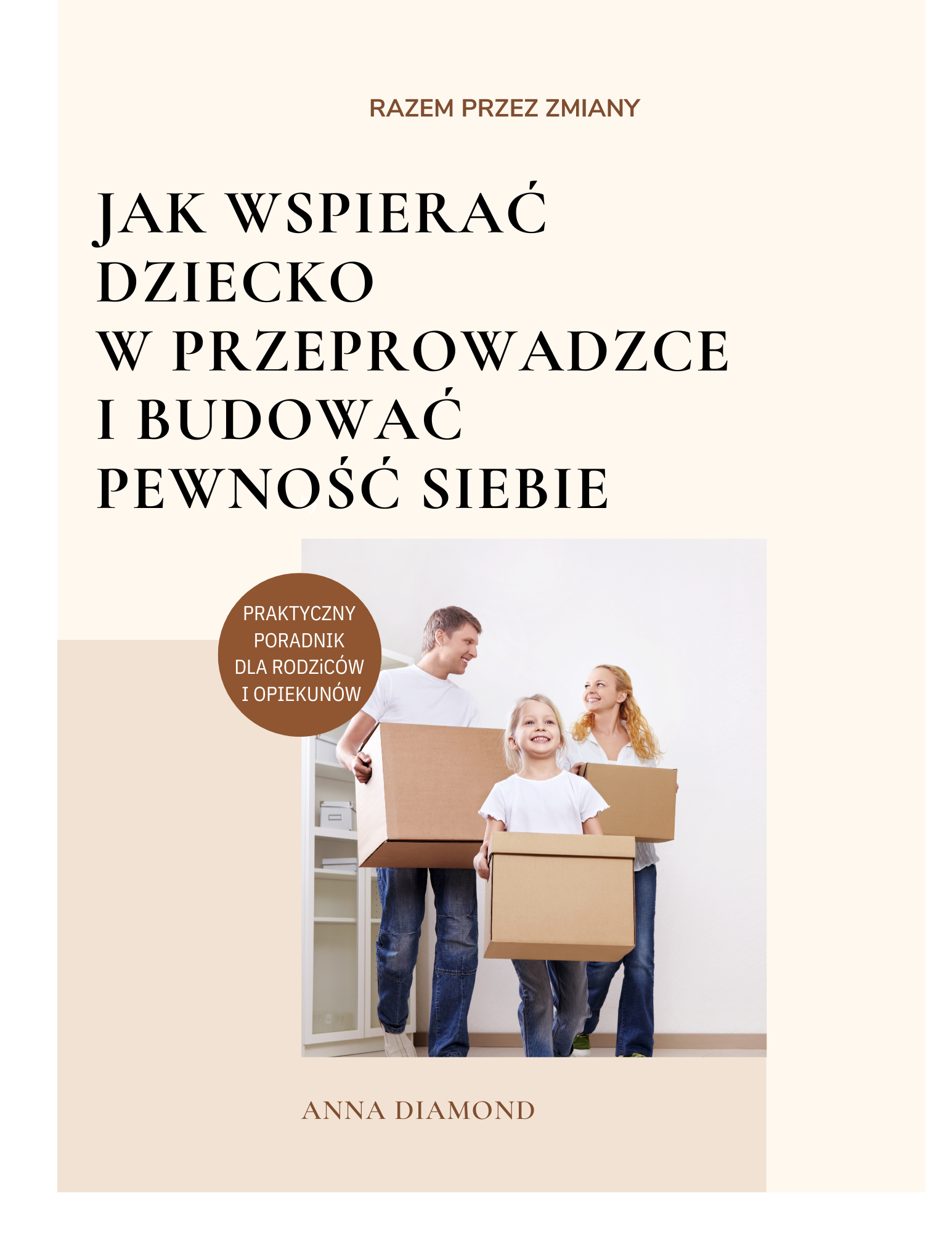 Razem przez zmiany. Jak wspierać dziecko w przeprowadzce i budować pewność siebie – To praktyczny poradnik dla rodziców, opiekunów, nauczycieli, psychologów dziecięcych i terapeutów. 📖 Dzięki niemu dowiesz się, jak wspierać dziecko w kluczowych momentach życia i budować jego pewność siebie.