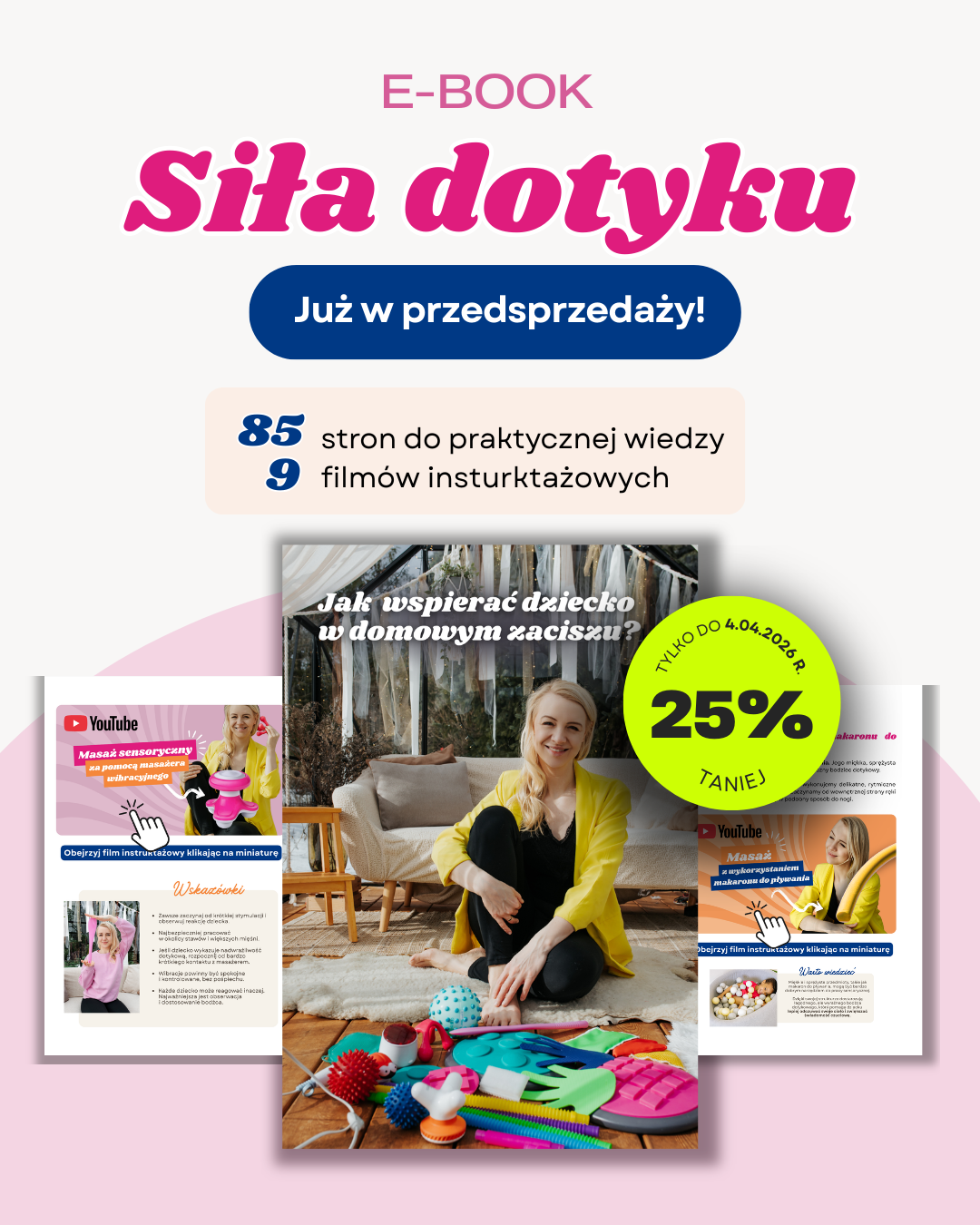Pragnęłam zebrać w jednym miejscu wiedzę, którą przekazuję rodzicom podczas konsultacji i terapii, oraz pokazać, jak w praktyce wspierać dziecko poprzez dotyk. Tak powstała „Siła dotyku”. Materiał, który łączy wiedzę terapeutyczną z konkretnymi wskazówkami dla rodziców.