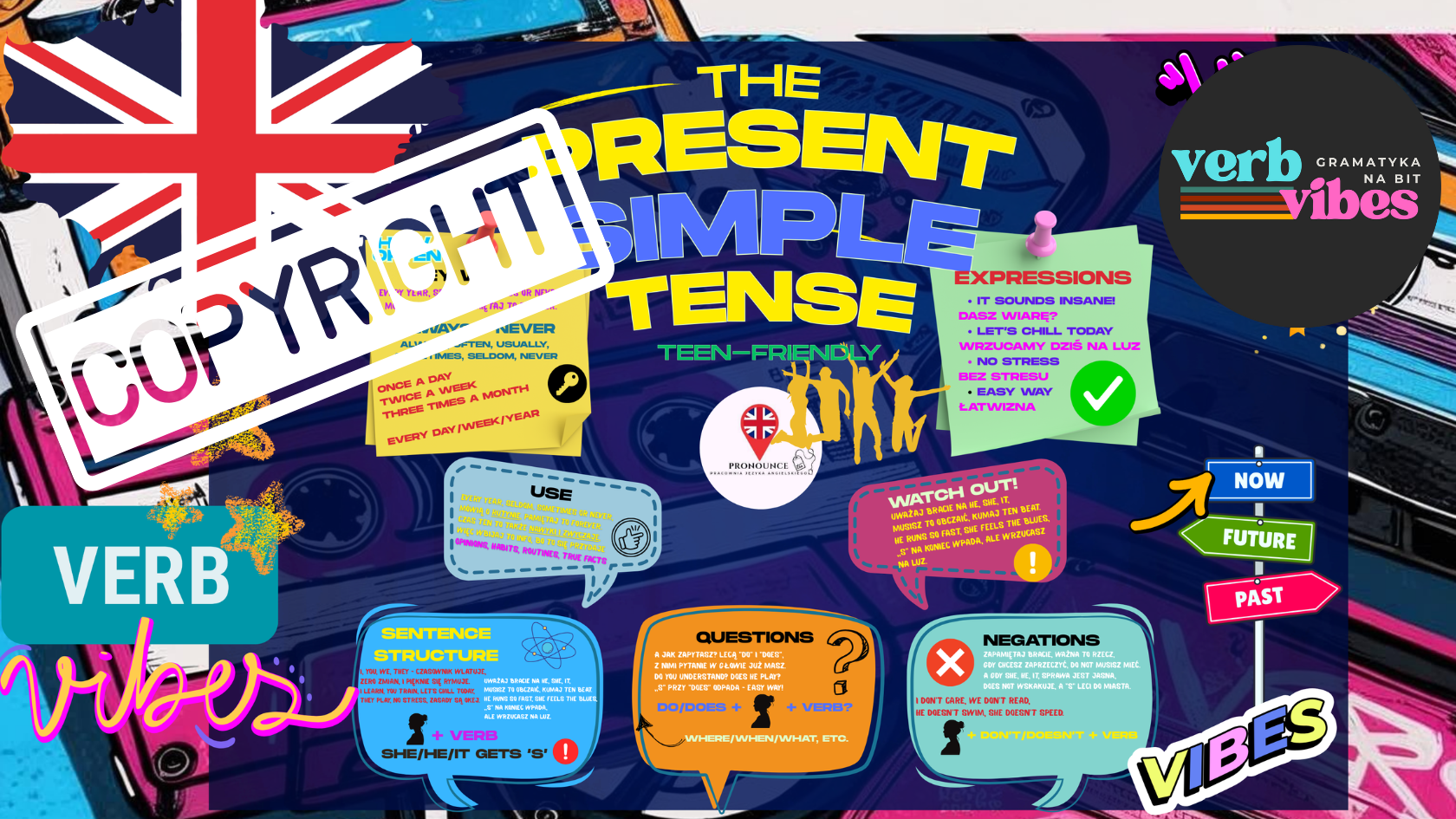 ✨ A dodatkowo - wspaniały prezent – po raz pierwszy w VerbVibes czas gramatyczny ma swój własny klip z tekstem, w graficzny sposób pokazujący budowę zdań! Żaden inny czas nie doczekał się takiej oprawy! Fragment klipu możesz zobaczyć na górze strony.