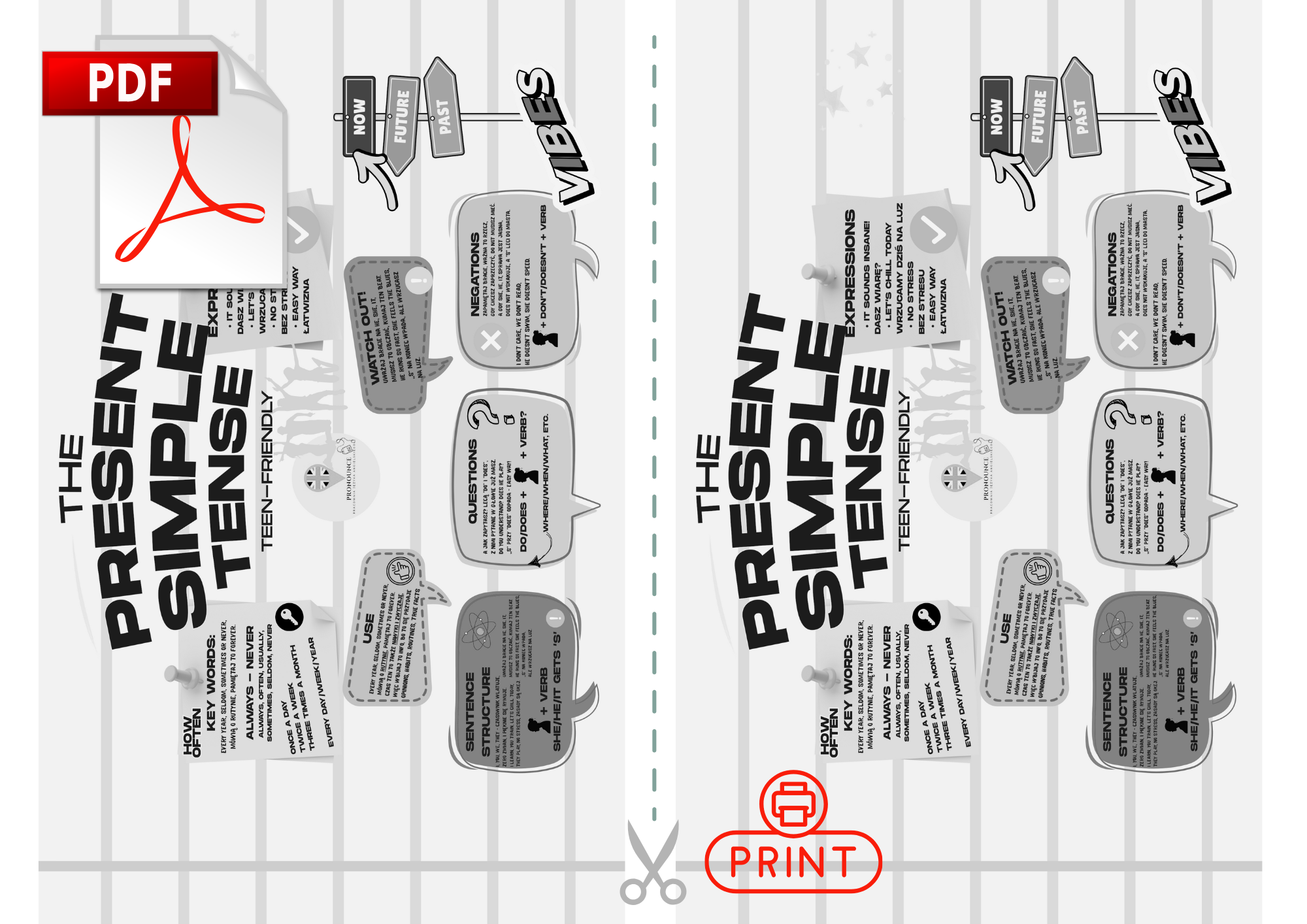 Present Simple to czas, który pojawia się już w klasie 4 i towarzyszy uczniom aż do dorosłości. Zmorą stają się regułki: -s, -es, does, don’t…. W tym pakiecie zostają one zamienione na viralowy, pogodny hip-hopowy kawałek, który koduje zasady przez rym i rytm.