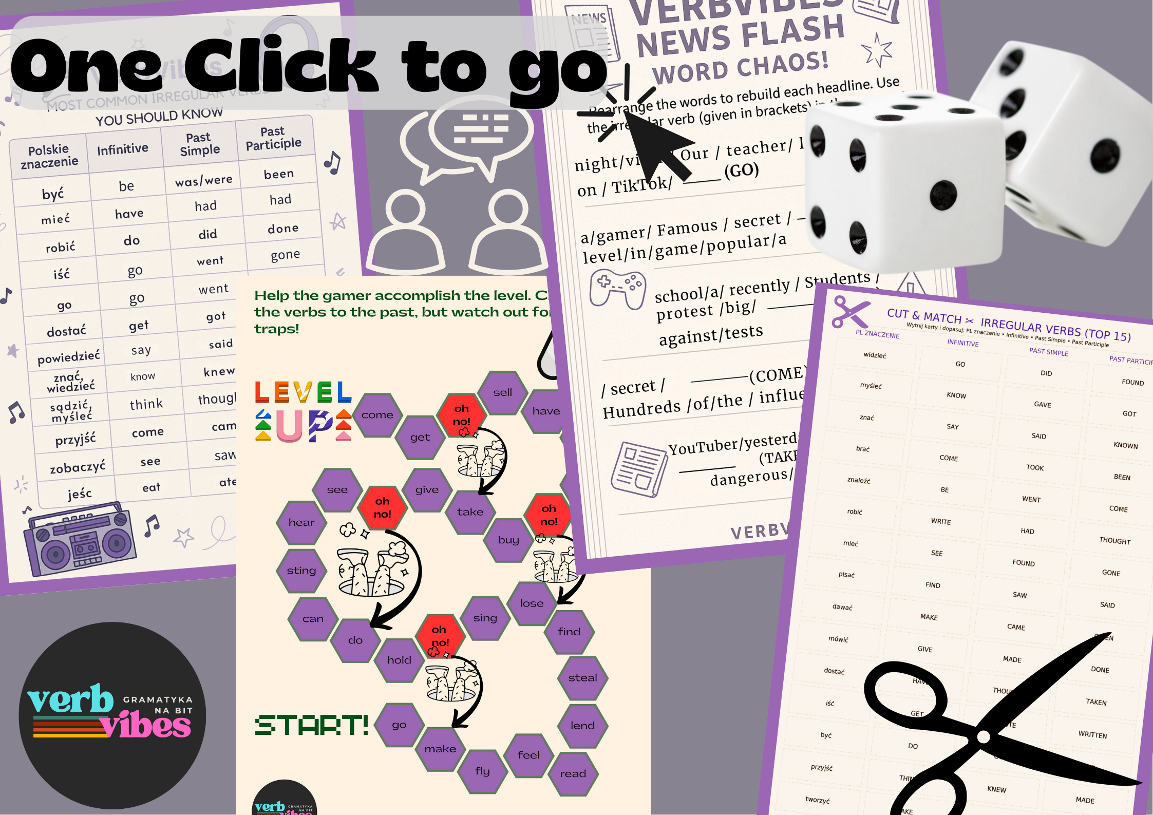Jeśli potrzebujesz ekspresowych pomocy na Twoje lekcje - zapraszam do pobrania tego błyskawicznego zestawu na Twoje zajęcia z czasownikami nieregularnymi.