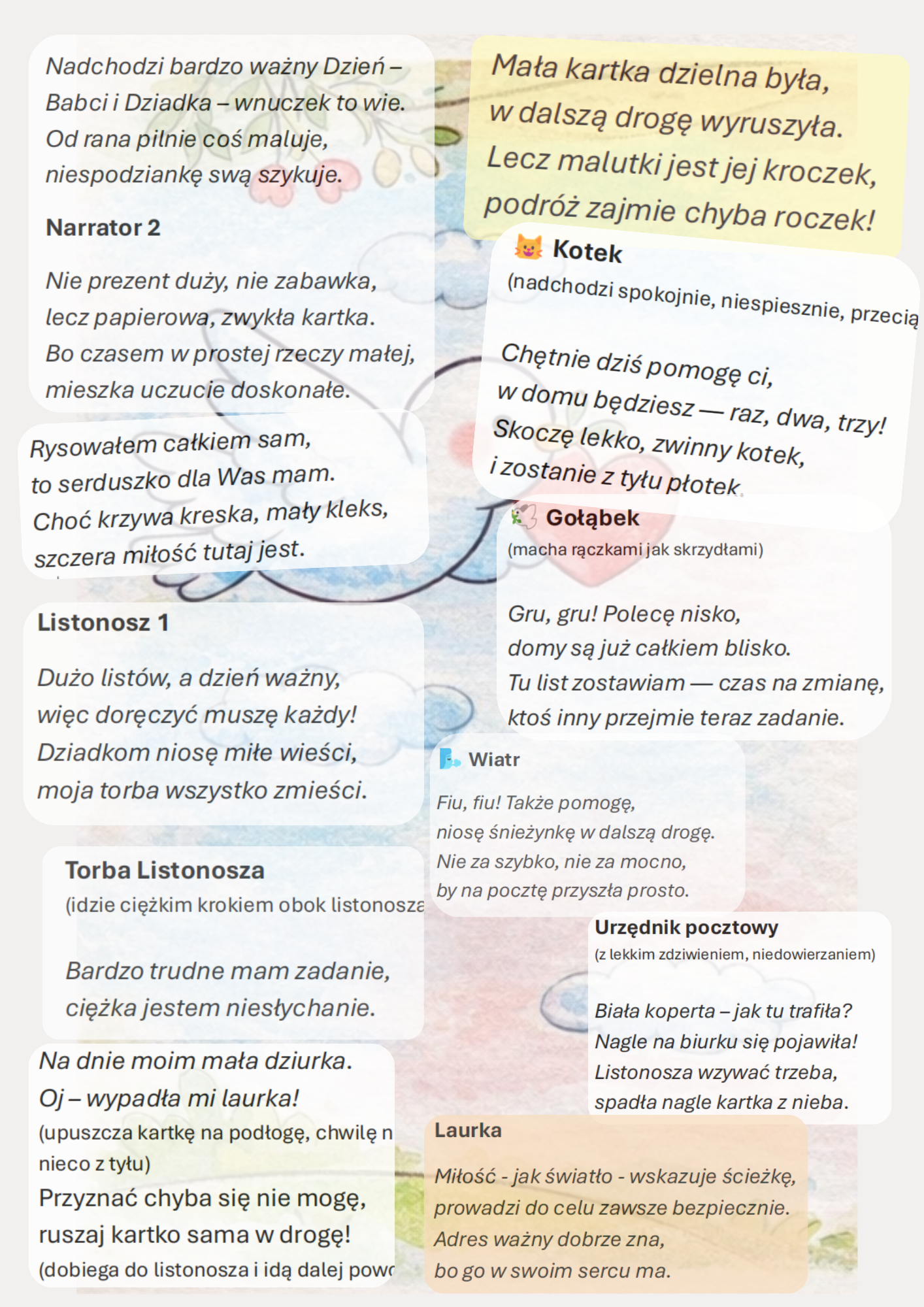 To opowieść o laurce, którą wnuczek przygotowuje dla Babci i Dziadka.