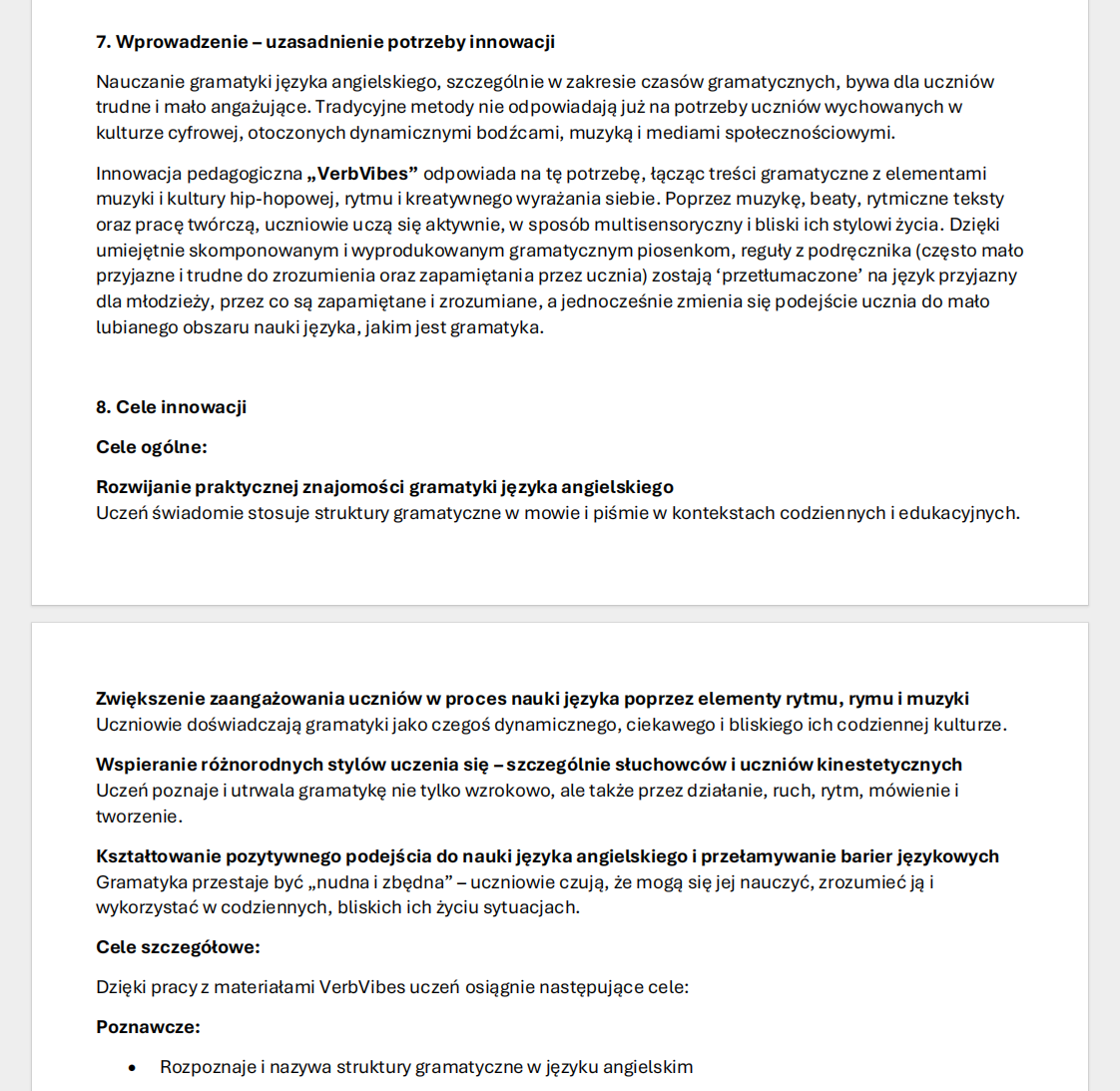 Bonus dla Ciebie - kompletne zgłoszenie innowacji pedagogicznej z VerbVibes - wykorzystasz z tym lub każdym innym pakietem gramatycznym.