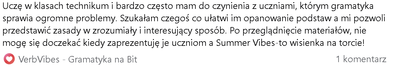 Nie zastanawiaj się dłużej, zobacz, co o VerbVibes mówią nauczyciele (więcej na stronie firmowej na Fb).