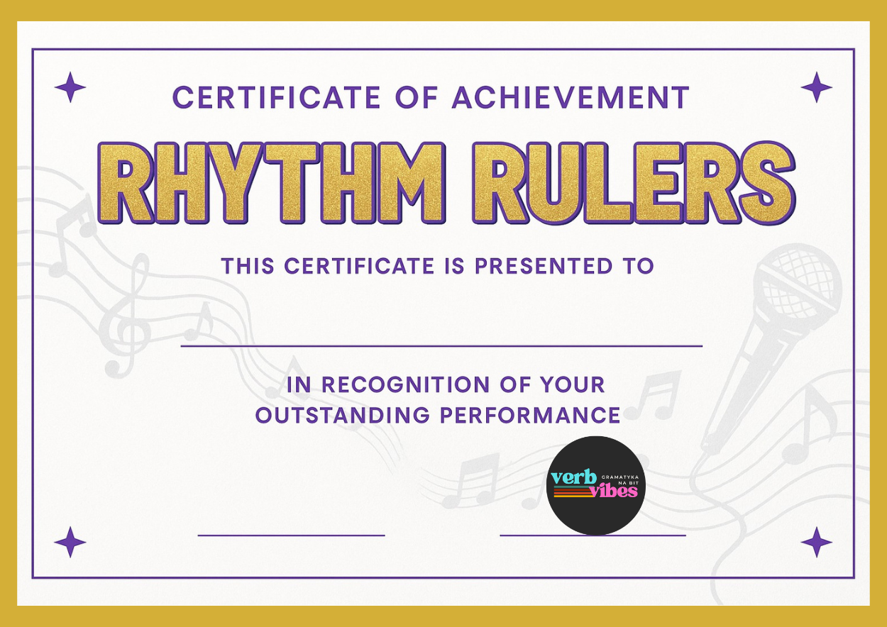 ✅ Piękny Dyplom dla zwycięzców gotowy do wydruku – The Rhythm Rulers - aby nadać lekcji rangę.