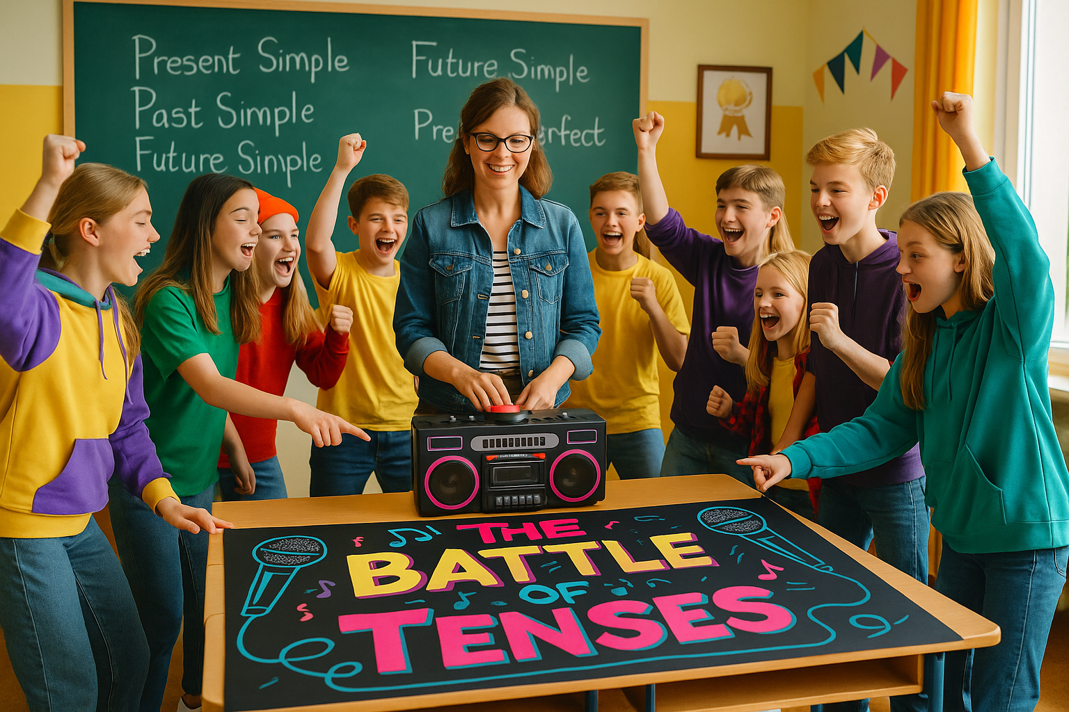 Jeżeli właśnie tak chcesz prowadzić w tym roku lekcje gramatyczne, sięgnij po the Battle of Tenses – Bitwę o Czasy od VerbVibes - Gramatyka na Bit!