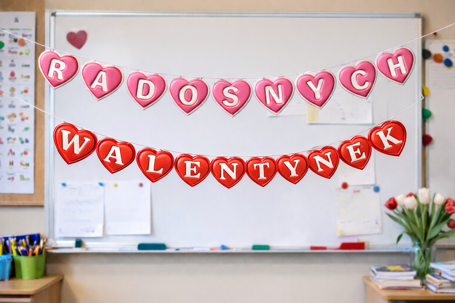 zawieszenia w sali jako element gazetki na czas Walentynek