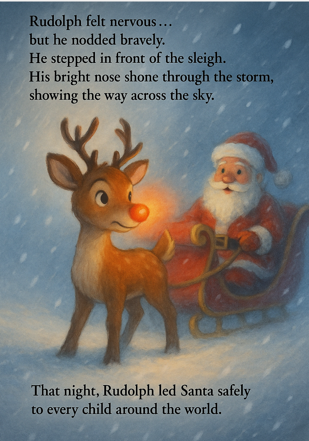 🦌 1. Przepiękna historia o Rudolfie, napisana prostym, bajkowym językiem