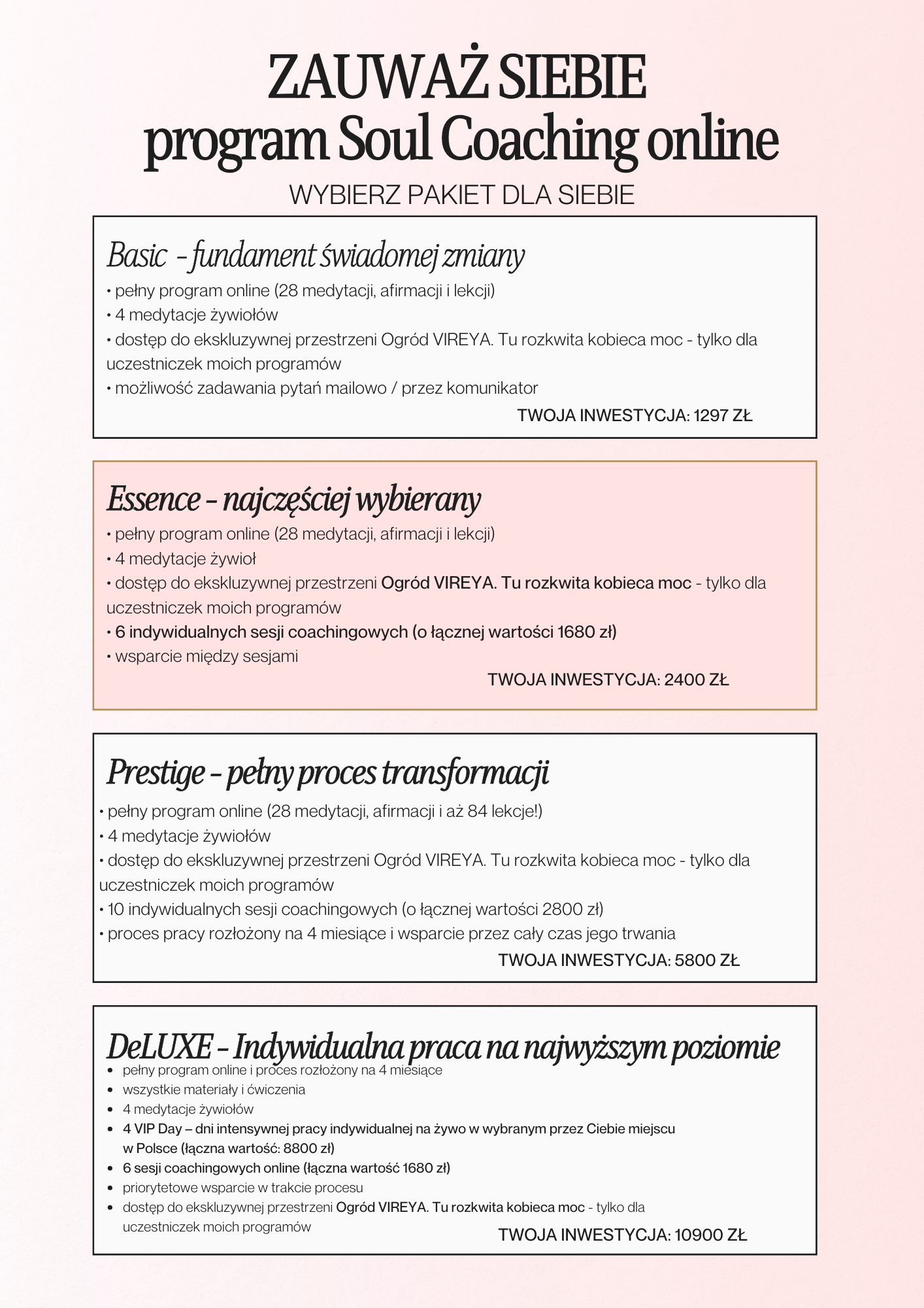 Jeśli chcesz pracować indywidualnie i wejść głębiej w proces – najlepszym wyborem będzie Essence.