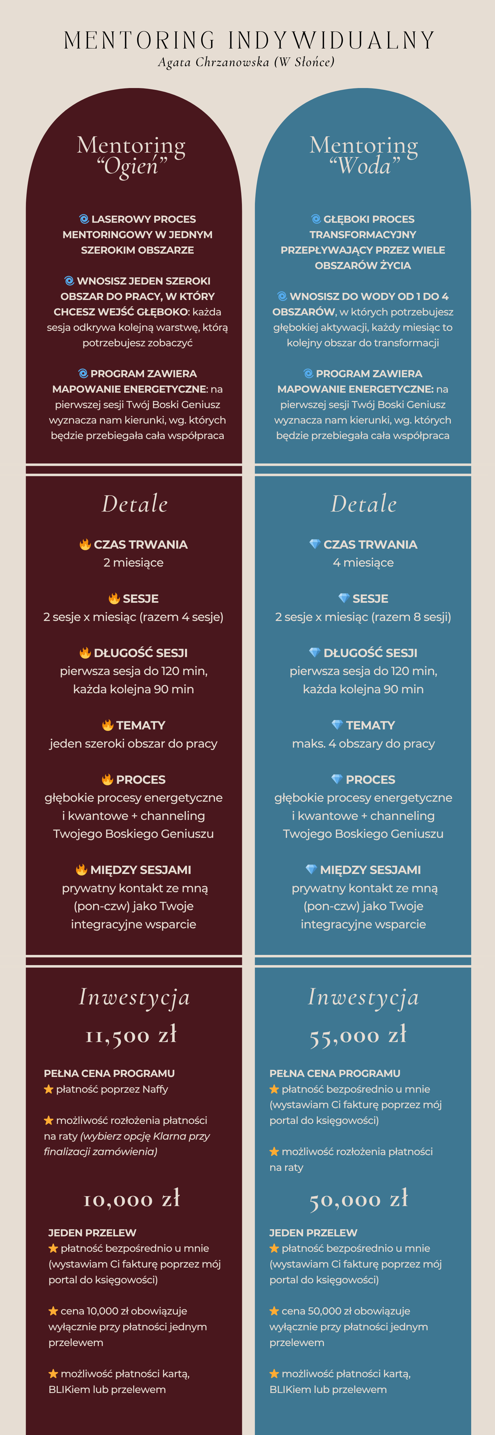 Ta przestrzeń jest dla Ciebie, jeśli chcesz wnieść w OGIEŃ jeden, konkretny obszar i wejść w niego tak głęboko, jak nigdy dotąd, pracując z mentorką, która nie tylko nadąży za Twoją potężną, dynamiczną energią, ale także aktywuje w Tobie zupełnie nową JAKOŚĆ- Twoją nową, wymarzoną tożsamość energetyczną.