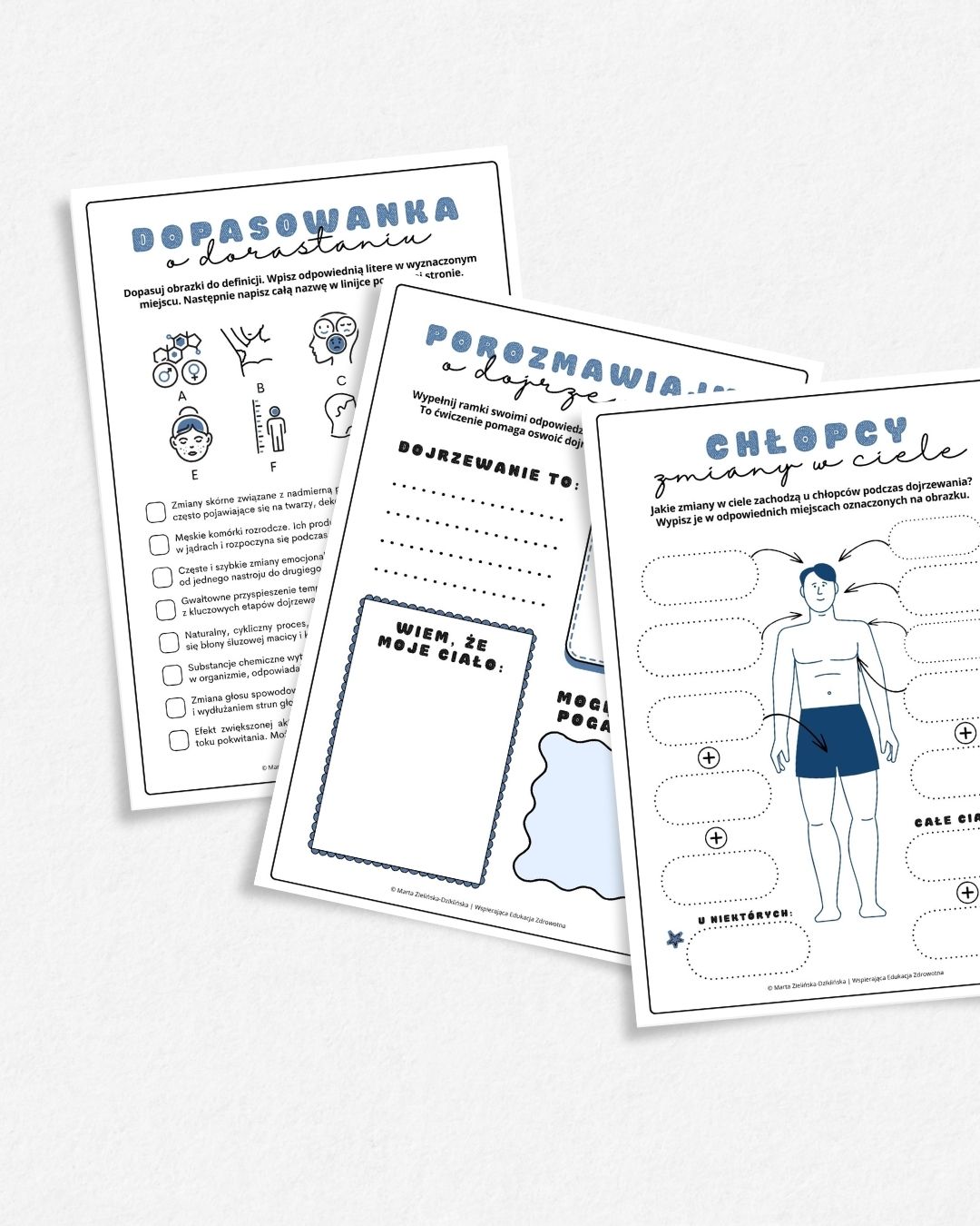 - karty pomagające poznać i zrozumieć zmiany zachodzące w ciele,
