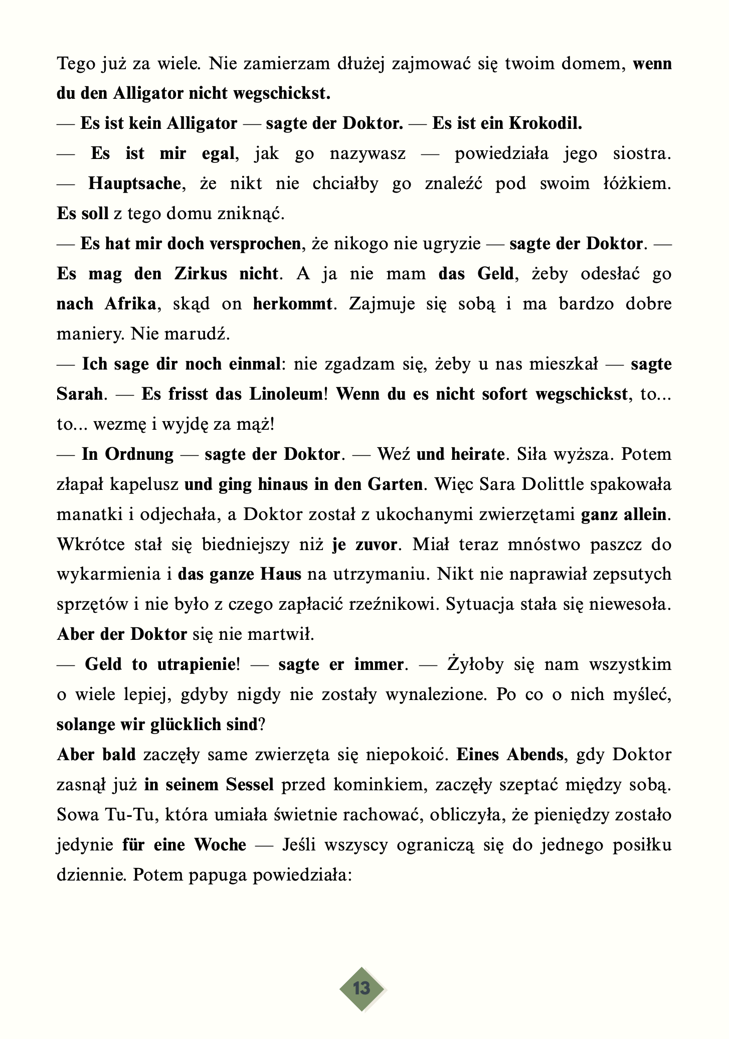 Kiedy czytasz, że dom Doktora był raczej klein, ale otaczał go rozległy Garten z trawnikiem, nie uczysz się tylko dwóch słów. Tworzysz w głowie obraz, który na stałe połączy te wyrazy z ich znaczeniem. Twój umysł nie musi już tłumaczyć – on po prostu rozumie. Gramatyka staje się czymś, co czujesz, a nie czymś, co recytujesz z pamięci.