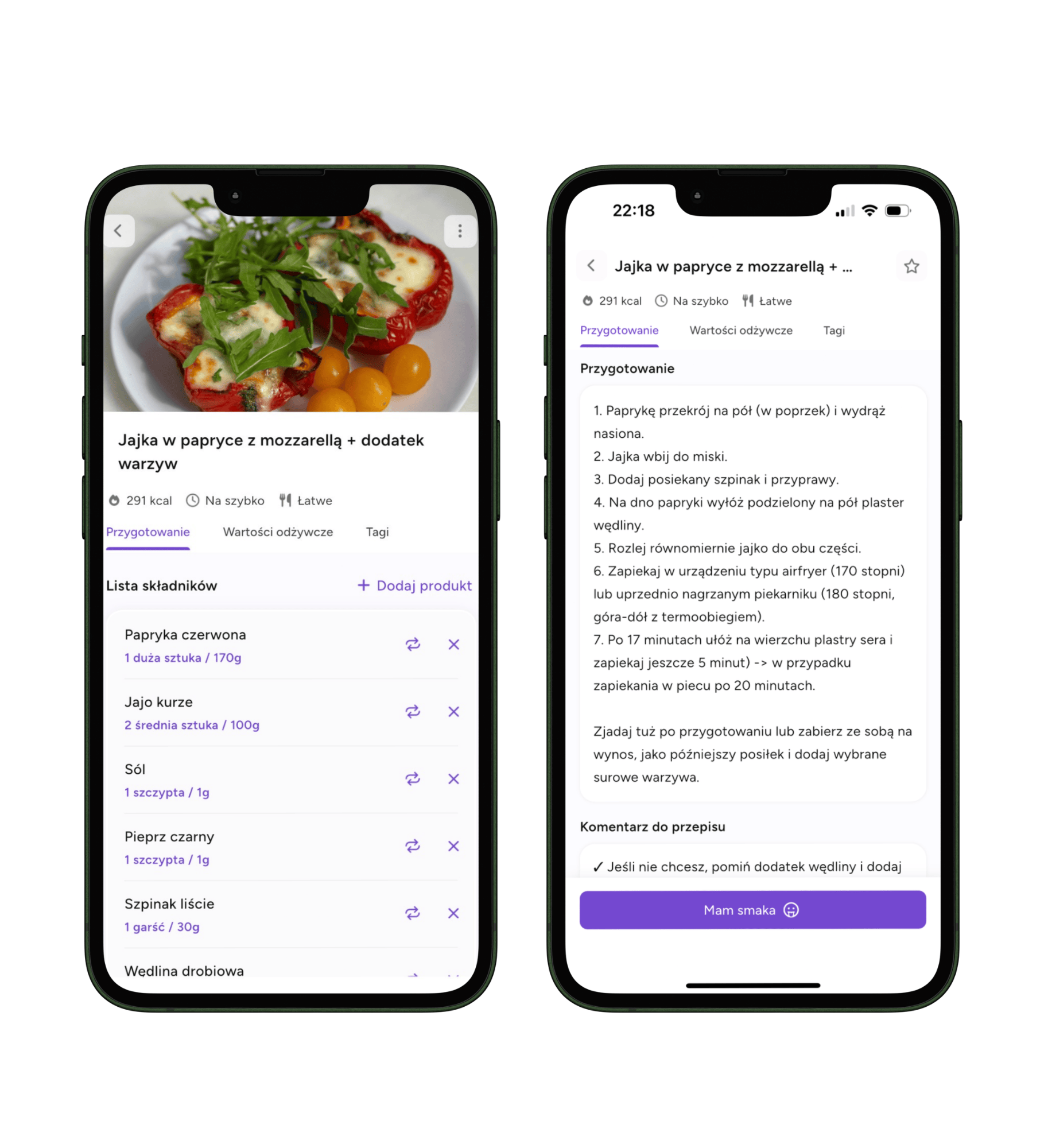 ☑️ wymienić dany składnik na inny: własny lub sugerowany przez aplikację
